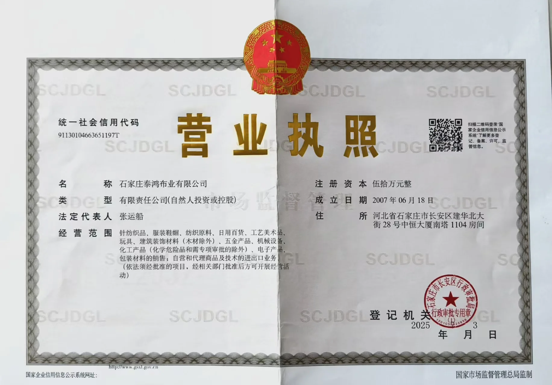 Company Name : Shijiazhuang Taihong Clothing Co., Ltd.